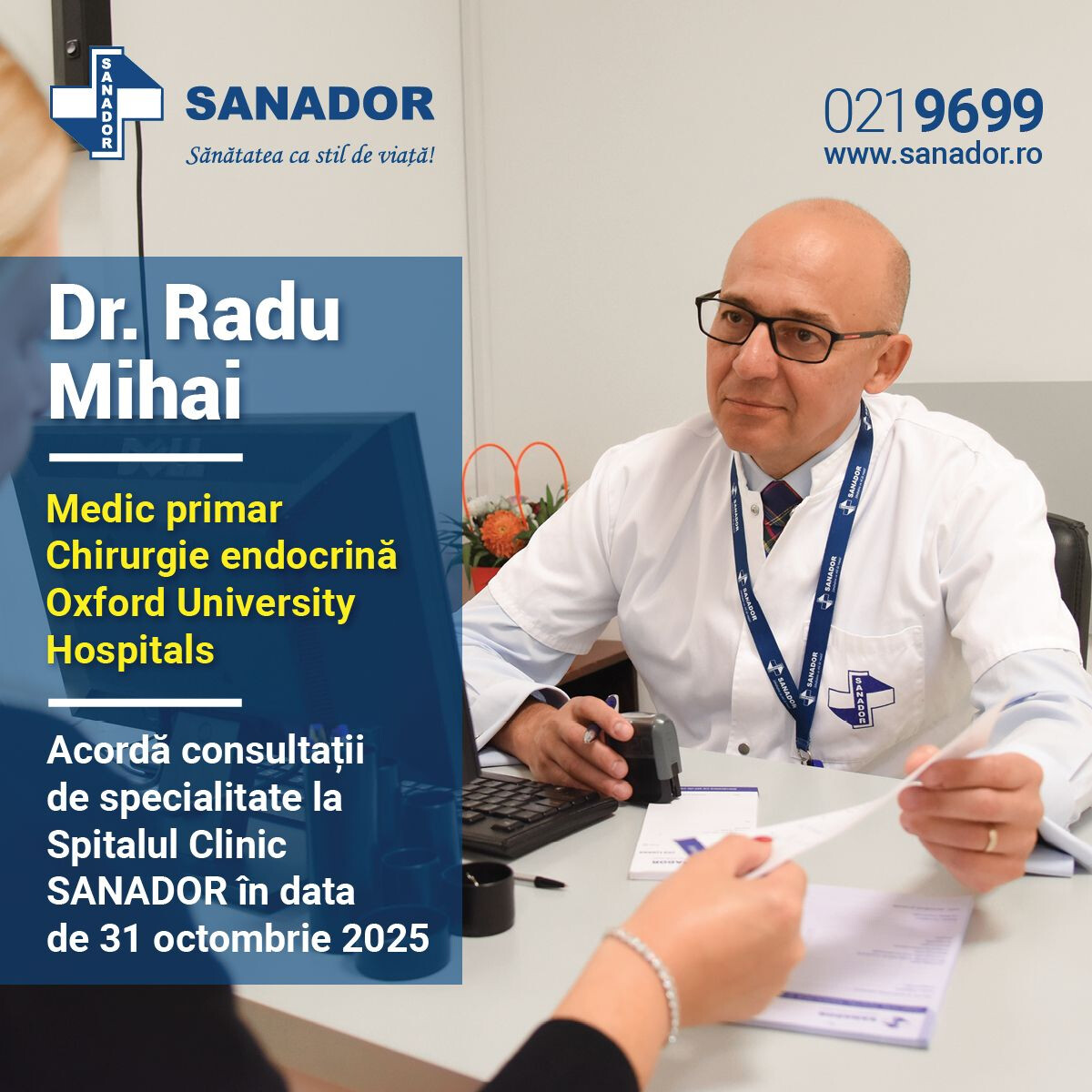 Ne face plăcere să anunțăm că Dr. Radu Mihai, de la Oxford University Hospitals (Marea Britanie), personalitate de mare prestigiu internațional în domeniul chirurgiei endocrine, revine la București în data de 31 octombrie - 01 noiembrie 2025 pentru consultații și pentru o serie de intervenții de chirurgie endocrină la Spitalul Clinic SANADOR.