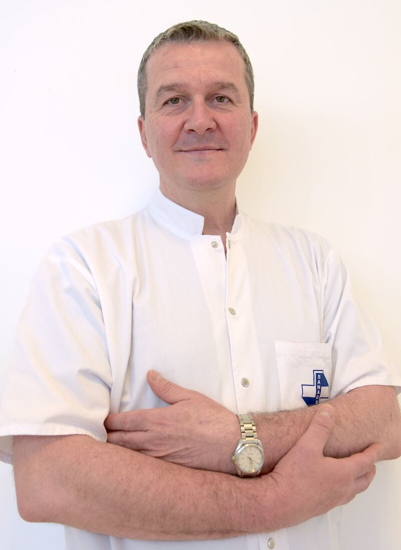 Dr. Gabriel Mitulescu, medic primar chirurgie generală la Spitalul Clinic SANADOR, în timpul intervenției