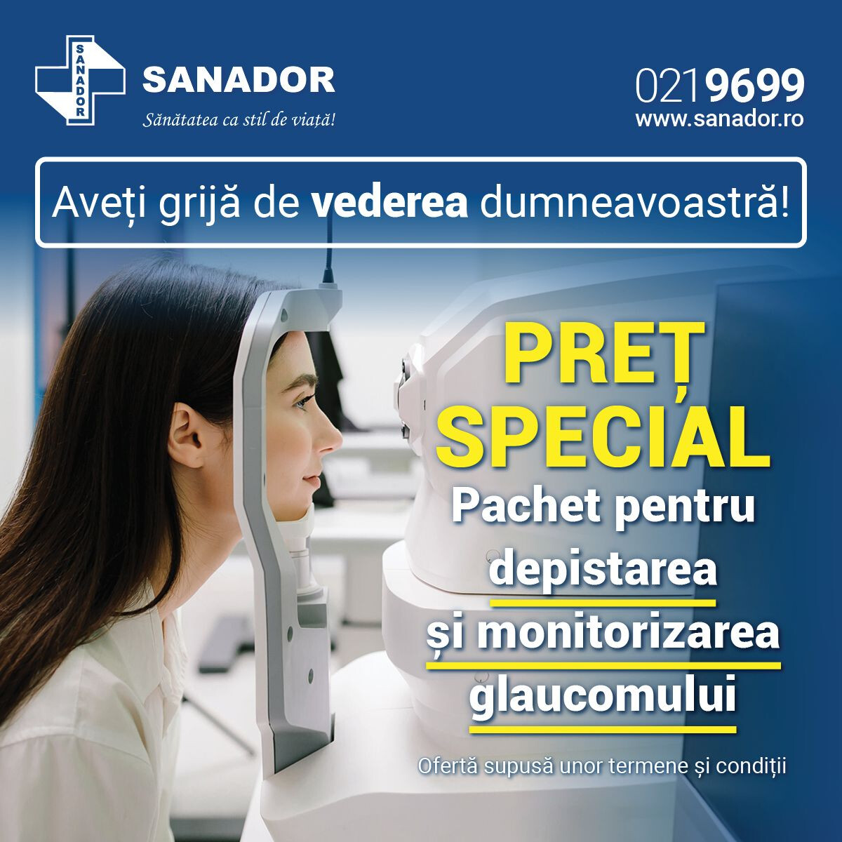 📅 *Oferta este supusă unor termene și condiții și este disponibilă până la 31 martie 2026 exclusiv în Clinica SANADOR Victoriei Corp A, la următorii medici: Dr. Carmen Popa, medic specialist Oftalmologie, Dr. Hayfa Masri, medic specialist Oftalmologie, Dr. Mihaela Constantin, medic primar Oftalmologie, Elena Suvac, medic specialist Oftalmologie. Nu se cumulează cu alte promoții în curs.