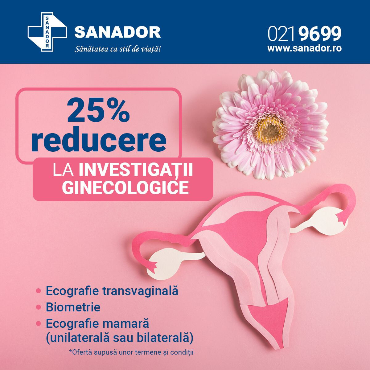 În perioada 20-31 ianuarie 2026, beneficiați de 25% reducere la investigații ginecologice, la SANADOR!