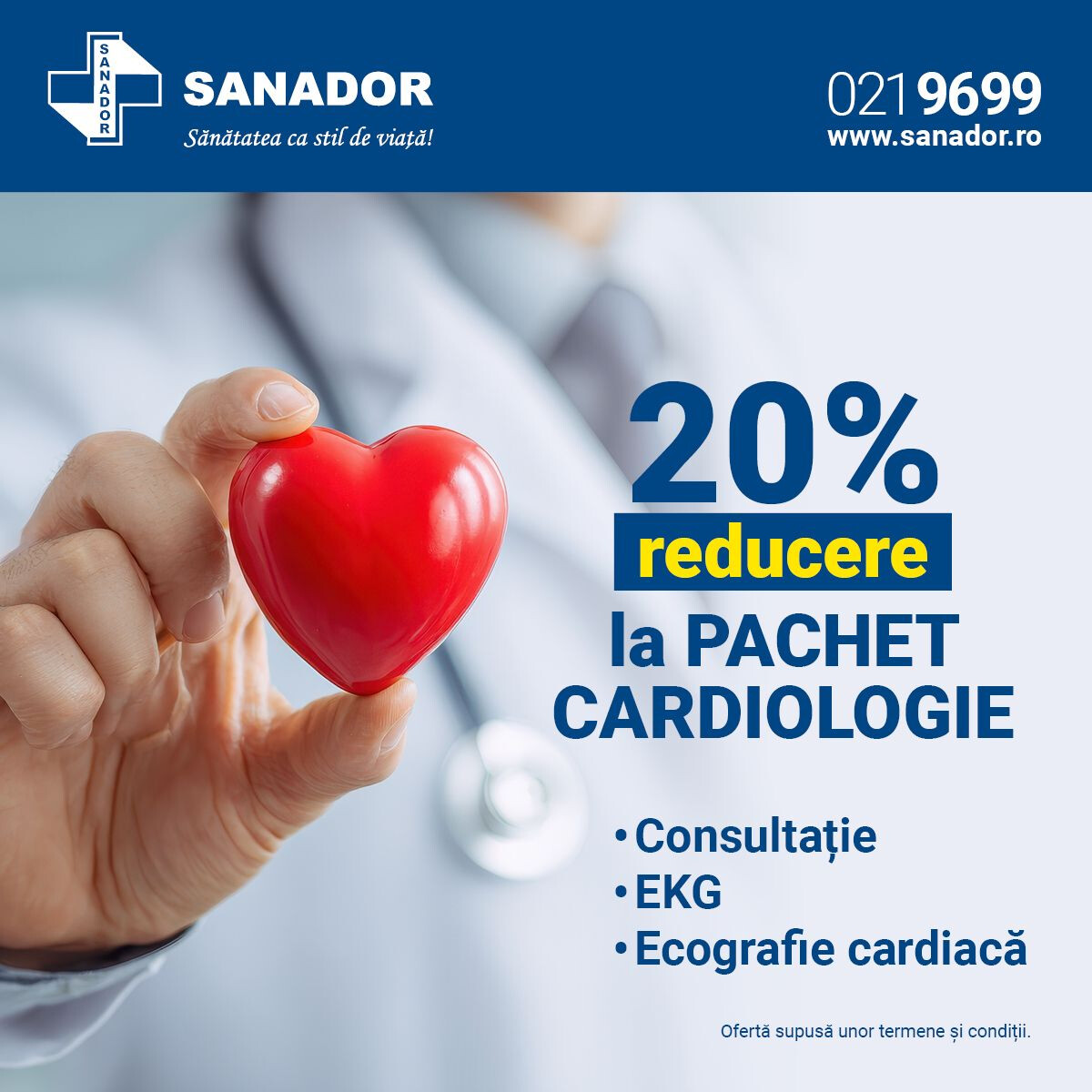 În perioada 01 - 31 decembrie 2025, la Clinica SANADOR Militari beneficiați de 20% reducere* la PACHETUL CARDIOLOGIE, care include: