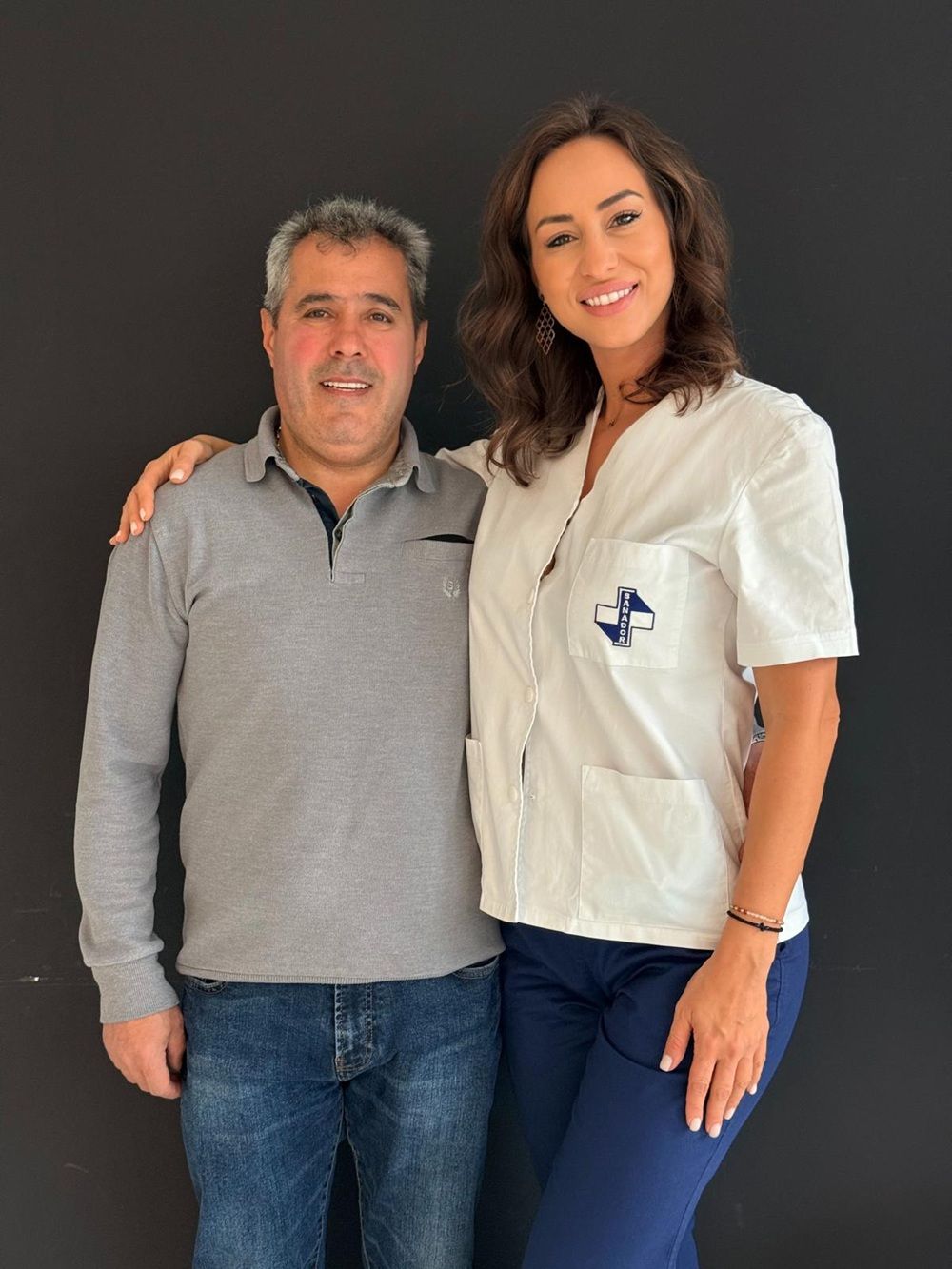 Leontin, alături de Dr. Alexandra-Melania Oncescu-Moraru, la Clinica de Stomatologie SANADOR, după finalizarea tratamentului.