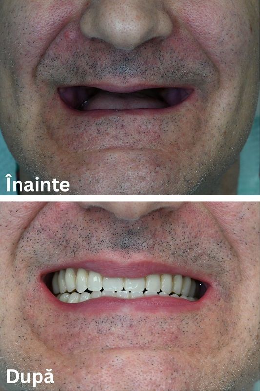 După consultul stomatologic și investigațiile indicate pentru cazul său, echipa medicală multidisciplinară de la Clinica de Stomatologie SANADOR i-a recomandat lui Octavian un plan de tratament, care a inclus extracții dentare și inserarea a doar câte două implanturi dentare pe fiecare arcadă, de care au fost atașate, apoi, lucrări protetice semifixe. Aceasta a fost cea mai bună opțiune pentru a se evita resorbția osoasă în timp.
