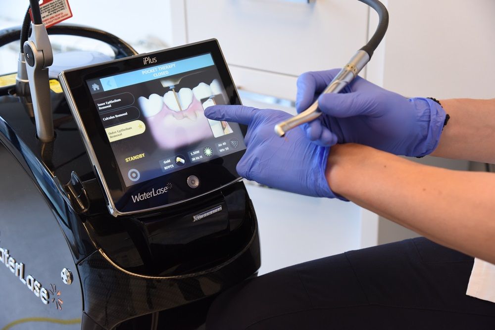În urma consultației de parodontologie, medicul a stabilit planul terapeutic necesar, pe care pacienta l-a acceptat imediat, pentru a putea obține primele rezultate înainte de întoarcerea în Anglia. Astfel, Florentina a beneficiat de parodontometrie, pentru măsurarea pungilor parodontale, de detartraj subgingival și de chiuretaj în câmp închis asistat laser.